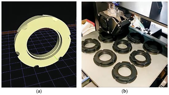 Designed and fabricated rings with needed air holes. (a) Designed 3D model. (b) 3D printing fabricated rings with air holes.