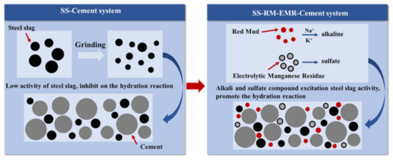 China is the world’s largest steel-producing country. According to official statistics/reports [1], China’s crude steel production reached 10.65 billion tons in 2020. The steel slag (SS) is a type of solid waste residue discharged during the steel smelting process. For every 1 ton of steel produced, 0.15–0.20 tons of SS will be generated. Currently, the utilization rate of SS in China is less than 30% [2]. A large amount of SS stockpiles occupy several land resources and lead to severe environmental pollution. Therefore, it is crucial to maximize the comprehensive utilization of SS.