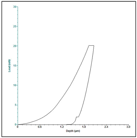 Figure 2 shows the load–displacement nanoindentation behavior exhibited by the resin of the nanohybrid composite after the bleaching regime at a loading and unloading rate of 0.5 mN/s at 23 ± 1 °C.