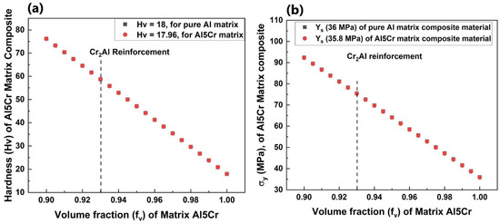 (a) Hardness and (b) yield strength dependence with volume fraction of Al matrix in Al5Cr Matrix Composite.