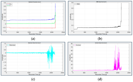 As stated before, the bearings’ end of life were conventionally determined through a lubricant-based analysis; however, it is still feasible to determine how reliable information extrapolated with statistical operators may be about the behavior of the damaged components if brought to the extreme of degradation.