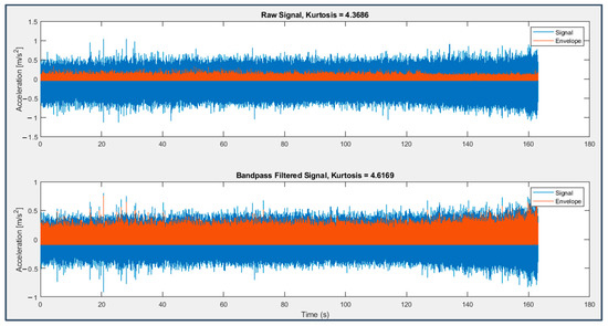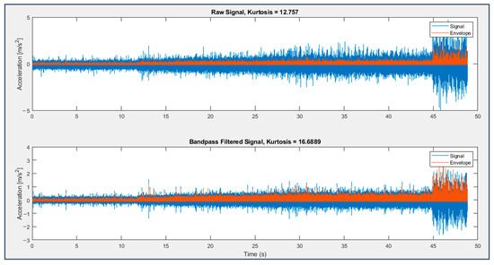 In Table 5, the values of Kurtosis computed for the different fault diagnosis techniques previously considered are reported. Signals from both sensor 6 on bearing 3 (last 49 s) and sensor 7 on bearing 4 (last 163 s) are processed within the frequency bandwidth 0–1000 Hz.