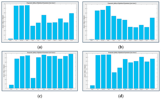 For this reason, the previously mentioned parameters of Correlation, Monotonicity and Robustness, typical indicators used in health management, have been computed on the statistical tools, similarly to what was conducted in [20], at first on every second of acquisition, then averaging the results on the entire test duration and finally obtaining a single quantity for each statistical parameter and each bearing as the average of the three indexes, in the same way adopted for Hjorth’s parameters and Detectivity.
