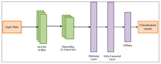 The CNN algorithm was studied in this model. The CNN algorithm is a variant of feed forward neural network. The architecture of the CNN algorithm is similar to the multilayer perceptron and consists of three layers. These are the convolution layer, pooling layer, and fully connected layer [34]. Multiple filters are included in this algorithm to extract or retrieve hidden features from the dataset. Figure 6 shows the architecture of the CNN-based deep learning models.