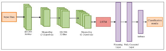 In the other model proposed in the study, LSTM and CNN algorithms were used as a hybrid and analyses were carried out. Three different models (HYBRID1, HYBRID2, and HYBRID3) were prepared using hybrid deep learning. The architecture of the first model (HYBRID1) is shown in Figure 7 as the others were prepared with reference to the first model.