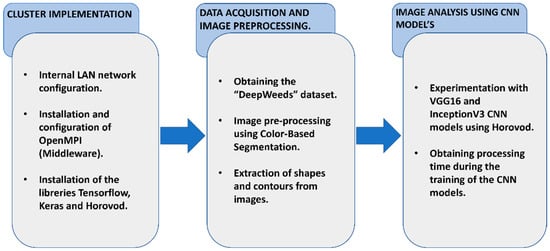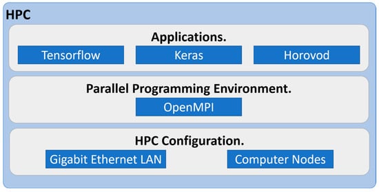 Figure 1 shows the proposed methodology for the implementation of our HPCC that was tested, using distributed deep learning and relying on the Python frameworks for deep learning: TensorFlow [], Keras [], and Horovod [].