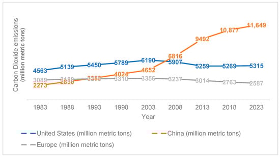 Energy-related carbon dioxide emissions in the US, China, and Europe from 1983 to 2023 [36].