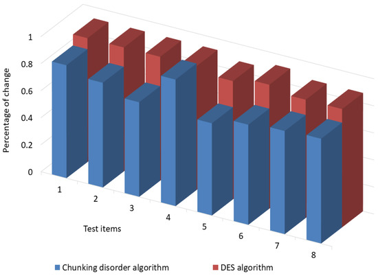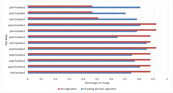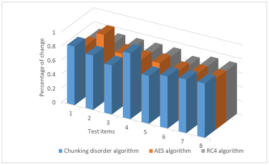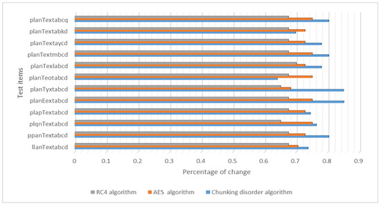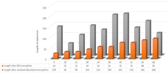Experimental Results and Analysis: The avalanche effect of the chunked and garbled encryption algorithm is compared with the DES, AES, and RC4 encryption algorithms for different plaintext encryption lengths. In addition, the security of this chunked chaotic algorithm is also discussed in terms of information entropy and algorithmic attacks.