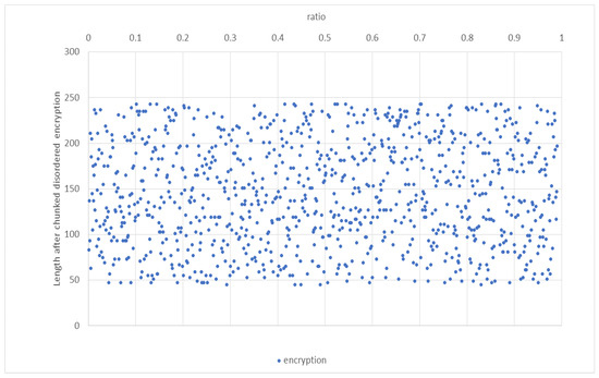 The traditional DES symmetric encryption algorithm needs to distribute keys in advance. However, obtaining a sufficient number of keys in practical application scenarios is often tricky, which limits this algorithm’s wide application. In contrast, the chunked chaotic algorithm does not need to distribute keys in advance and is suitable for systems of all sizes. In addition, the chunked chaos algorithm supports the online upgrade function, and new algorithm modules can be added at any time to meet evolving business needs. For example, more adjustment factors can be added to the rules of chunked chaos to achieve a chaotic effect. The chunked chaotic algorithm inserts the chaotic rules into the generated string in the form of sharing code when generating the ciphertext to achieve the purpose of steganography so that there is no need to distribute the sharing code in advance during the data transmission, which improves the security and applicability of the algorithm. In addition, the MD5 values of the plaintext and post-garbled plaintext are also introduced in the insertion rules for double-checking after the subsequent separation of the post-garbled data by the sharing code to ensure the reliability of data transmission and reduce the probability of success of attackers. As different block sizes and scrambling algorithms are used to reintegrate the plaintext, collisions may occur between the chunking and scrambling processes, resulting in the same data after reintegration. If they happen to be modified during transmission, they may be misclassified as unmodified secure data. Although it is possible to follow the logic of the chunking and disordering algorithm to restore it, data hazards are still involved, thus reducing the algorithm’s security. This chunking algorithm adds two MD5 values to the ciphertext to reduce the chance of collision and misclassification and improve the algorithm’s security. These two MD5 values are obtained by hashing the plaintext and the chunked data. During the decryption process 5,6, the MD5 values are verified to match, and if they do not match, the ciphertext has been tampered with and needs to be processed accordingly. Therefore, increasing the MD5 value can effectively reduce the chance of collision and false positives and improve the algorithm’s security.