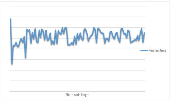 The experimental results show that the encryption and decryption time of this chunking disorder algorithm is weakly correlated with the length of the sharing code, and the encryption and decryption time is random and fluctuates within a specific interval, which means that it is difficult to crack the encryption and decryption time of the algorithm by using time-consuming analysis attacks. Therefore, the present chunking scrambling algorithm strongly resists edge channel attacks. Figure 21 illustrates encryption and decryption times for different lengths of sharing codes.