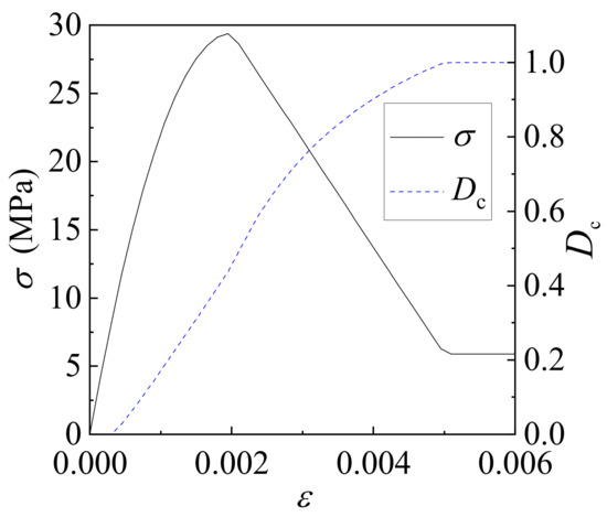 Based on the characteristics of the Yassin model and the basic principle of damage mechanics, the compression damage index is calculated as follows [23]: