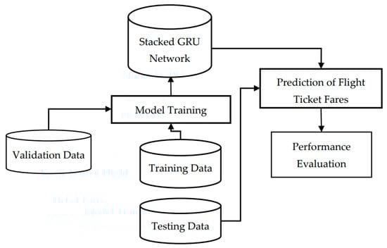 A GRU model is a powerful algorithm for predicting time series data, particularly when dealing with nonlinear features []. However, building an effective GRU model for prediction tasks is not straightforward. Models with too few layers may struggle to capture the nonlinearity of fluctuating features, while models with too many layers may take too long to train and are prone to overfitting. In this study, we investigated its effectiveness in predicting flight ticket fares, which are influenced by a variety of factors. By leveraging the peculiarities of airline ticket fare series, the predictive abilities of the GRU model can be enhanced. After conducting a number of experiments, we developed a stacked GRU model that balances performance and efficiency.