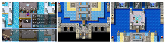 Five short-duration dEERs were designed for different topics in the syllabus of Mathematics I, with 3 implemented for algebra and 2 integral calculus. Each dEER aimed to reinforce knowledge and was implemented and designed using RPG Maker MZ [73] software. They were based on a specific narrative (science fiction and fantasy) with different challenges to be overcome by solving mathematical puzzles and problems in a limited time. They were designed to be played collaboratively in groups of 4–5 students, but were also available for individual play.