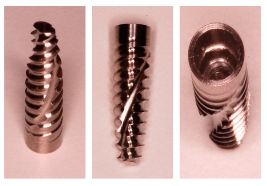 - Jimbo, R.; Tovar, N.; Marin, C.; Teixeira, H.; Anchieta, R.; Silveira, L.; Janal, M.; Shibli, J.; Coelho, P. The impact of a modified cutting flute implant design on osseointegration. Int. J. Oral Maxillofac. Surg. 2014, 43, 883–888. [Google Scholar] [CrossRef] [PubMed]