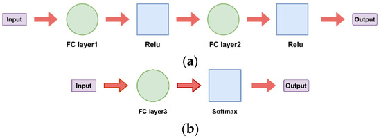 Structure sketch of the fully connected (FC) layer; (a) The first two fully connected layers; (b) The last fully connected layer.