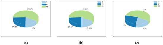 Figure 21 shows that the BILSTM and SVM models performed better regarding the prediction of class III surrounding rocks, involving fewer errors, with no obvious differences evident in the figure, while the MLP model performed in general. For the prediction of class IV surrounding rocks, the prediction accuracy of the three methods decreased, with the final performances being BILSTM > MLP > SVM, and the SVM model having more error points. For the prediction of class V surrounding rocks, the BILSTM model was the best, and the other two models had similar prediction results. Figure 20 and Figure 21 show that the BILSTM model proposed in this study outperforms the other two methods.