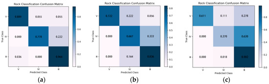 Rock class distributions. (a) Dataset, (b) training set, and (c) test set.
