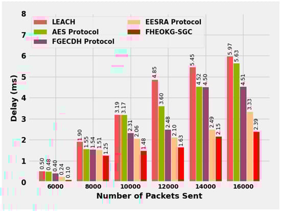 Delay outcome of the FHEOKG-SGC approach under varying counts of packets sent.