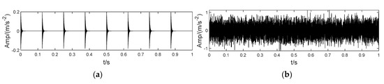 Simulated signal of bearing failure. (a) Raw impulse. (b) The impulse with noise.