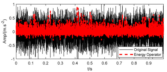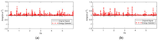 Obviously, T is the square product of the instantaneous amplitude of the vibration and its instantaneous frequency. Given that , so T is larger than the original Teager . In contrast to the traditional definition of energy, it increases the product of the frequency square. Because of the high vibration frequency of the transient component, the modulation results of CTEO have the ability to effectively characterize the transient impact component. It should be noted that the energy operator used in all subsequent experiments is CTEO.