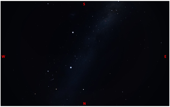 The MW is not visible in most urban centres across the world, either due to light pollution, geographical location, atmospheric conditions or contaminants [30]. Therefore, it is a challenge to capture adequate night sky images with proper exposure [31]. To overcome this limitation, we used a simulator, Stellarium (version 0.22.2) [26], to generate MW test images for processing. Stellarium is an open-source desktop planetarium software that the creators claim is intended for the community of amateur astronomers and for knowledge transfer in transdisciplinary research. This software was created for simulating the celestial sphere based on a given time and location. In other words, this simulator can give the observer a reasonably realistic rendering of the sky with variable sky and viewing settings [26].