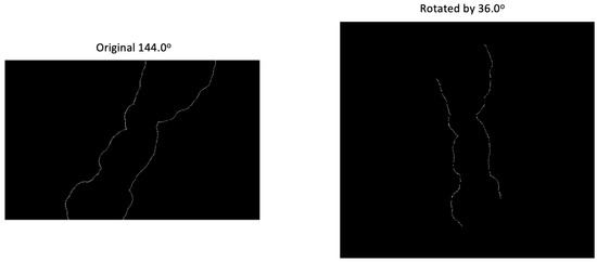Once the maximum value of has been calculated, we can rotate the original image through the negative of the angle to straighten it, as shown in Figure 13, entirely for comparison purposes, to explore the quality of the result.
