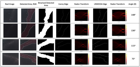 This method uses a combination of the wavelet transform, Shannon entropy and thresholding to achieve edge detection. LRWEEDA has been developed to be efficient, with low redundancy and noise resilience, and it is well suited to real-time image processing applications [40]. LRWEEDA’s basis in Shannon entropy ensures that its performance in high noise or low signal levels will be consistent and constrained by the information available. There are many edge detecting methods, most notable being the Canny edge detector [41] (which we also used in the results section below), and there are neural-network-based techniques [42]; thus, the selection of LRWEEDA and Canny was a choice from many options. The objective of the algorithm is for it to be used inside the modest computational resources of embedded hardware (such as the Raspberry PI 4 or even the Raspberry PI Zero II); thus, deep-learning-based approaches were avoided despite their high performance [43,44].