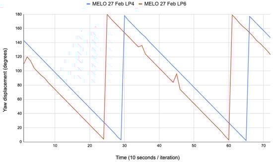 Overall, the mean accuracy of the method is better than for the sequences tested under LP: 4, shown in Table 4, which is comparable to other azimuthal reference technologies, whether magnetic or celestial. The results degraded under higher light pollution levels. Maximum errors did not exceed under LP: 4 conditions. However, in the presence of light pollution, the angle reference provided by the MW starts to break down; thus, under LP: 6, maximum errors of around emerge. In addition, different features of the MW endure longer under high LP levels, leading to an offset solution compared to the angle measured at higher light levels. Exploring the performance of the method of segmenting the MW (and by analogy, probably any comparable method), it becomes apparent that the higher LP levels render the MW inaccurate, then unreliable, and finally invisible and useless for navigation as the LP level increases.