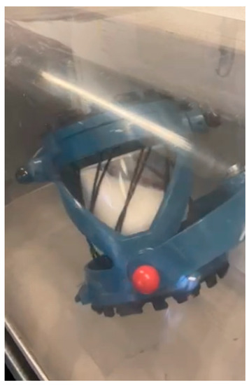 The methodology consisted of filling the cup with the component mass fraction according to the formulation shown in Table 2, closing the cup with a lid, placing it in a 3D mixer and running for 60 s. In Figure 5 a screenshot taken during the mixing test is observed. Figure 6 shows the cup filled with the components totally segregated before the test, and the cup with the components mixed after the test.