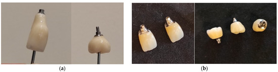 Milled customized titanium alloy superstructures: (a) central incisor and (b) first molar.