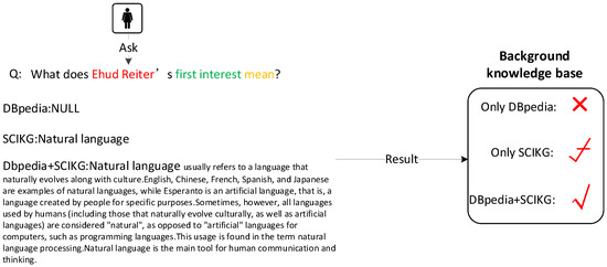 To obtain a complete answer, the current mainstream approach is to use additional knowledge. For example, video information [6], text description information [7], or image information [8] are usually used as additional background knowledge. The method of using external information is an important way to answer the complete question. On the one hand, it can answer questions in a specific field. On the other hand, it can also answer common sense knowledge related to knowledge in the specific field. Therefore, in the question answering process, we try to combine domain-specific knowledge graphs and open-domain knowledge graphs to obtain complete answers to questions that require both domain-specific knowledge and open-domain knowledge as background knowledge.