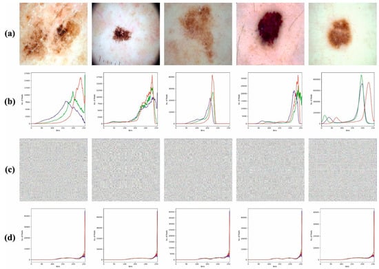 (a) Original Images (b) Histogram of Original Images (c) Encrypted Images (d) Histogram of Encrypted Images.