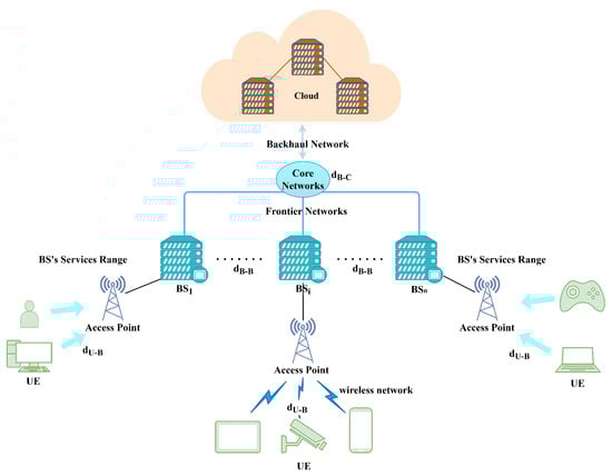 denotes the transmission rate from the cloud to the edge BS, and similarly, by setting as the transmission rate between BSs, we can obtain the transmission delay between BSs: