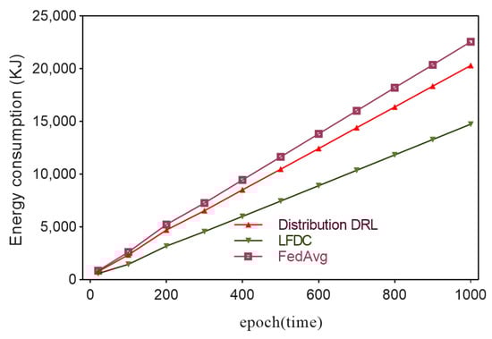 Figure 5 compares the training energy consumption of LFDC with distributed DRL and FedAvg. As the number of epochs increases, LFDC exhibits superior energy performance compared to the other two learning algorithms. This is because, firstly, FedAvg requires all BSs to continuously undergo online training and constantly upload their parameters. Although distributed DRL does not involve parameter uploading, its BSs are always engaged in online training, and the number of local training iterations remains constant. The LFDC method, by selecting suitable BSs for training, choosing appropriate parameters from these BSs for uploading, and dynamically adjusting the number of local training iterations, achieves better online training energy efficiency than the other learning algorithms.