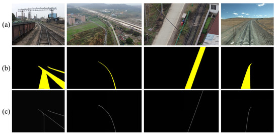 Datasets. A total of 3235 overhead-view images of railways were collected in Ma’anshan, Nanjing, Qinghai–Tibet Railway and our laboratory. These images were divided into 2277 images for the training dataset, 655 images for the validation dataset, and 303 images for the test dataset at a ratio of 7:2:1.