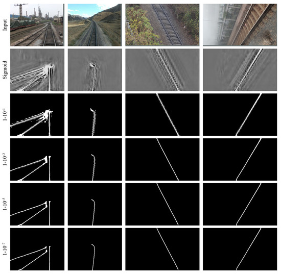 which is ultimately chosen as our threshold. As expected, the skeleton of each railway becomes more obvious and the F-score is much higher than the inference result without our threshold function, as shown in