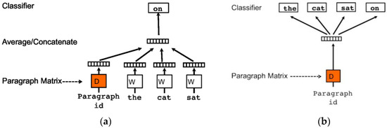 Architecture of Doc2Vec [44]. (a) PV-DM architecture; (b) PV-DBOW architecture.