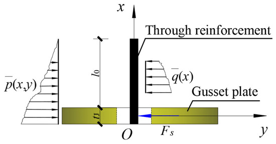 In the formula, , , , and denote integral constants, and denotes the eigenvalue of penetrating steel bars (mm−1). The special point of the force acting on the joint penetrating steel bar, the assumption in this paper, and the boundary conditions can be determined as follows: