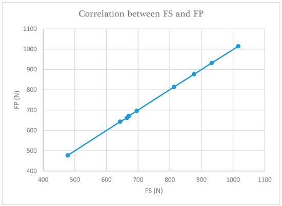 Linear correlation between FS and FP readings. The Pearson correlation coefficient is 0.999, p < 0.0001.