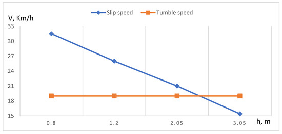 Figure 4 illustrates the dependence of the speed and height of the center of gravity. The critical turning point is where the turning speed and the sliding speed curves meet. In this case, a vehicle will roll over when the height of the centre of gravity of the vehicle is 2.4 m from the ground and the speed of the vehicle is 19 km/h.