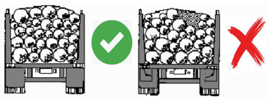 The European Commission states that the top of the logs in the middle should be higher than that of logs on the sides to allow the load to be properly fastened, as shown below [13]. The logs should rest on a conical wedge or a toothed brim [14].