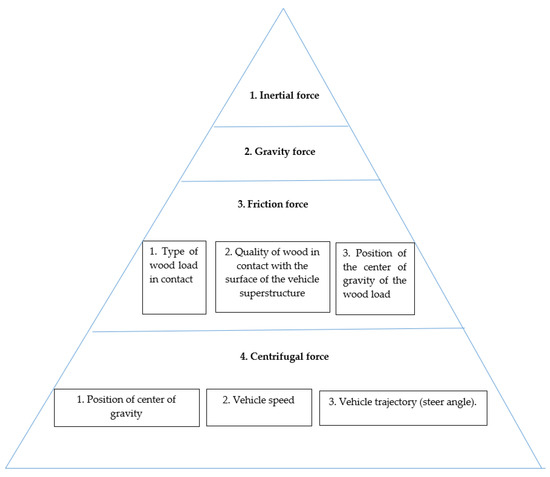 Scheme of priority assessment of forces acting on vehicles transporting logs.