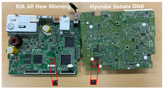 In this section, we extract and analyse the information of the AVN system from the Hyundai Sonata DN8 (2018) and Kia All New Morning (2020). The OS of the AVN systems is the Android 4.4.2 KitKat. We found a method of entering the system’s engineering mode and hidden menu related to the ADB. However, we could not figure out the next steps to connect the AVN system to a PC and enable ADB communication. Therefore, logical data acquisition from the AVN systems was impossible and a chip-off method was used to obtain the data as a hardware-based data acquisition approach.