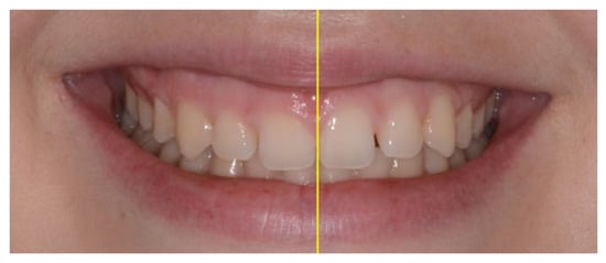 The maxillary anterior teeth are the most influential in terms of smile aesthetics [5], and one of the variables that influences dental aesthetics seems to be the symmetry of the anterior teeth, considered in terms of dental elements and gingival arches. Regarding these considerations, it is imperative that an ideal treatment plan should include the improvement of this aspect as much as possible to provide the patient with the most aesthetically pleasing restoration [6,7,8,9,10].