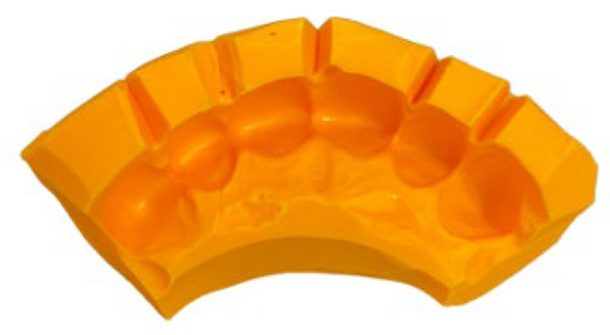 A silicone guide was produced from the three-dimensional printed model following the same procedure described previously.