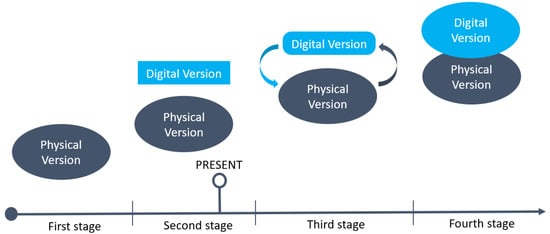 According to the classic concept introduced by Michael Greaves, a digital twin is a set of virtual information structures that fully describe a potential or actual real manufactured product from the microscopic to the macroscopic geometric level. Based on the concept of digital twins, digital marketing author Lior Kitain identified four stages of the concept’s development, which are clearly presented in the figure below [] (Figure 2):