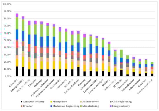Based on the research results, the following conclusions can be drawn for various industries regarding digital transformation. Aerospace prioritizes hierarchy, interoperability, unified standards, and semantics. Civil Engineering focuses on hierarchy, lifecycle, and meta-modeling. Management emphasizes interoperability, systematic verification, ontology, and subjectivity. In the IT sector, there is a strong focus on hierarchy, meta-modeling, lifecycle, and systematic verification. The military prioritizes interoperability, lifecycle, and visualization. Mechanical engineering highly prioritizes hierarchy, interoperability, systematic verification, ontology, and lifecycle. Manufacturing emphasizes hierarchy, interoperability, ontology, and subjectivity. The energy industry prioritizes meta-modeling, hierarchy, and subjectivity.