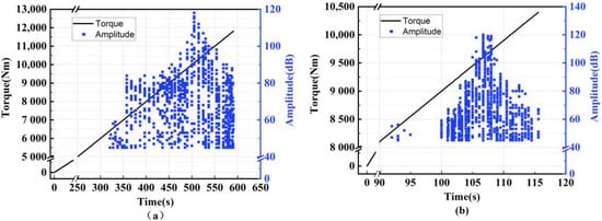 Acoustic emission monitoring experiment results: (a) [45°]6 shaft results; (b) [45°]10 shaft results.