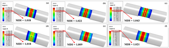M = −10,136.80 Nm matrix MDI: (a–f): 1st layer–6th layer.