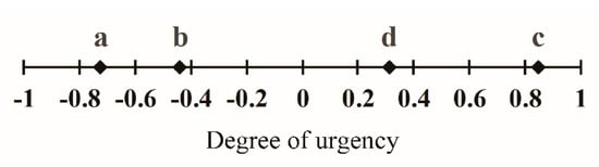 The order of the degrees of urgency from highest to lowest was c, C, d, D, b, B, a, and A. We found that the order here is consistent with that derived in experiment I.